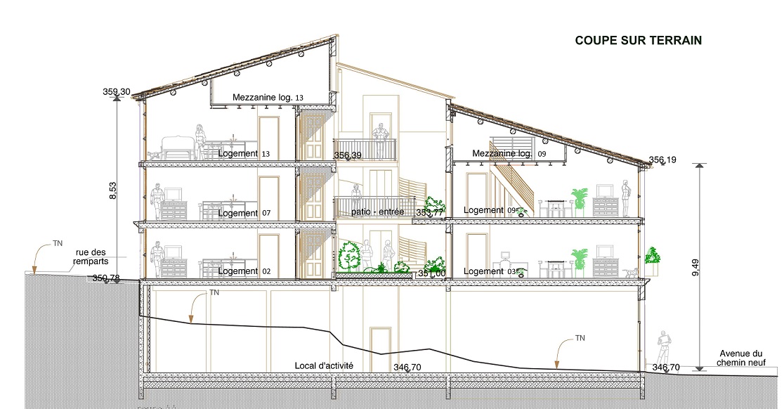 • projet d'architecture logements coupe